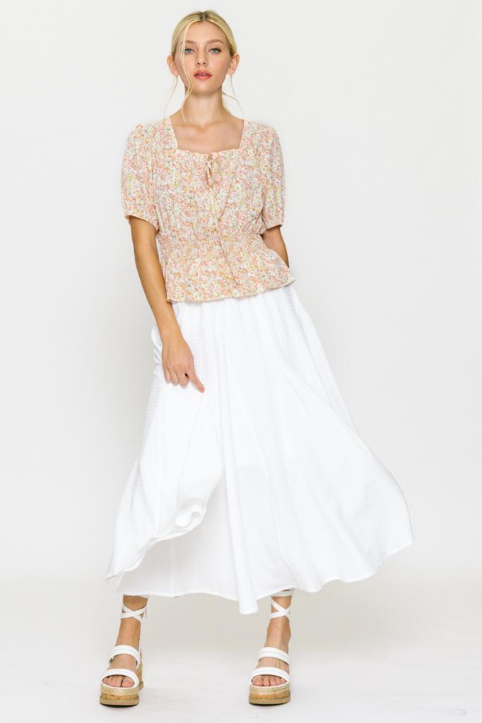 Falda amplia acampanada con textura, elástico en la cintura y forro