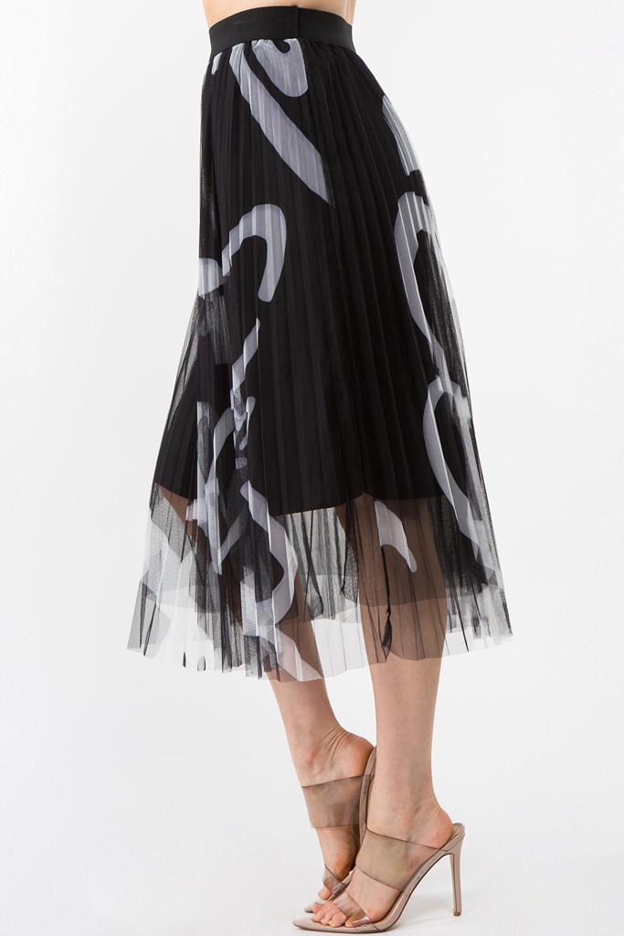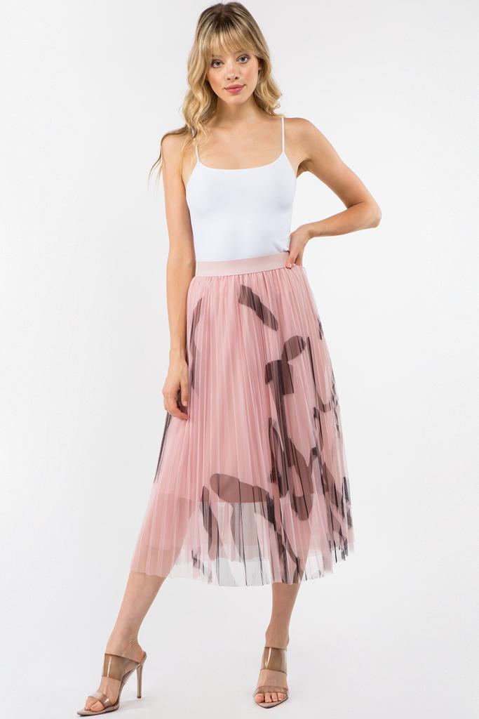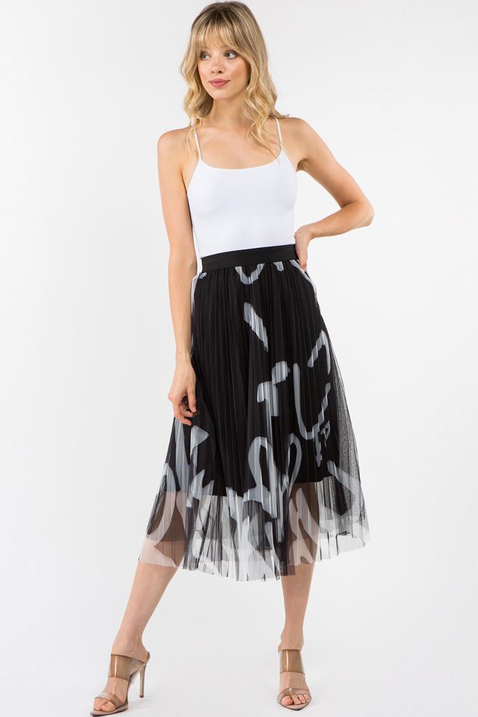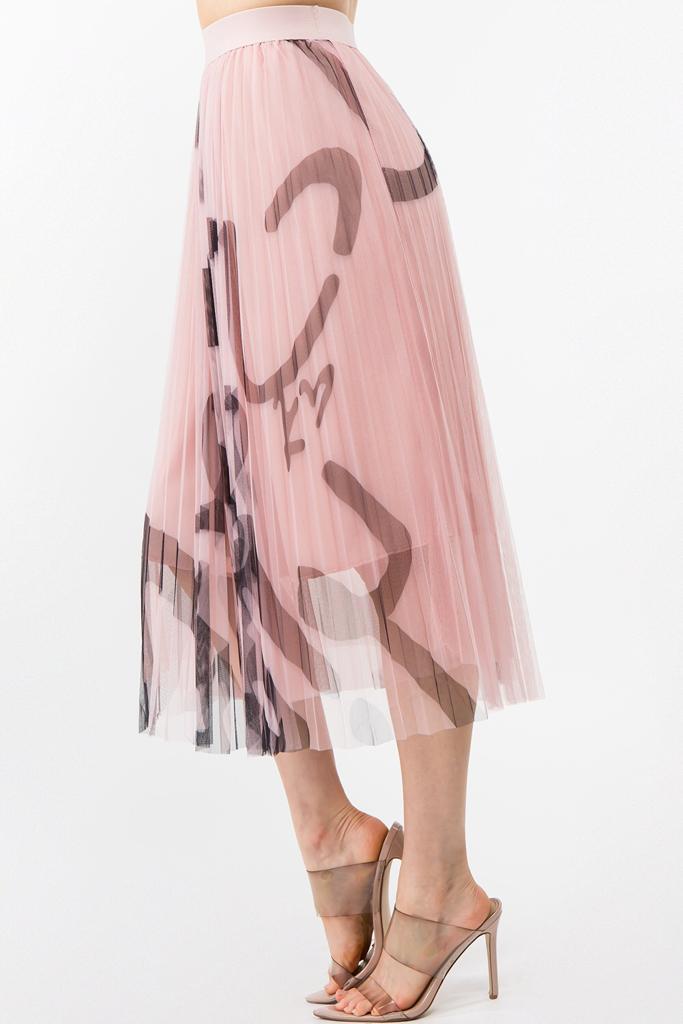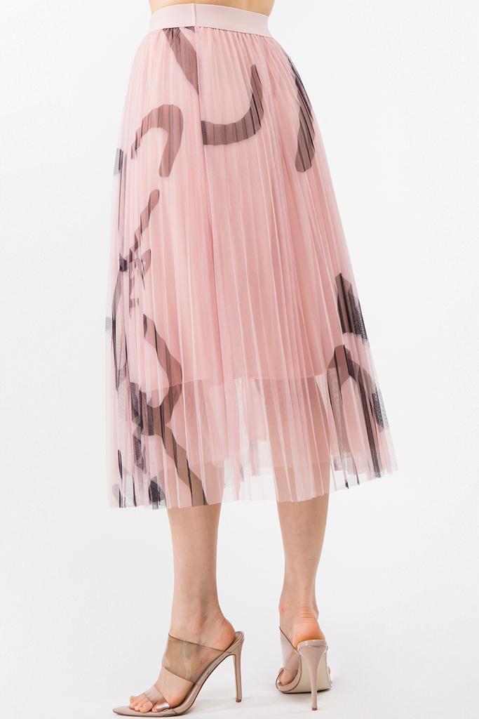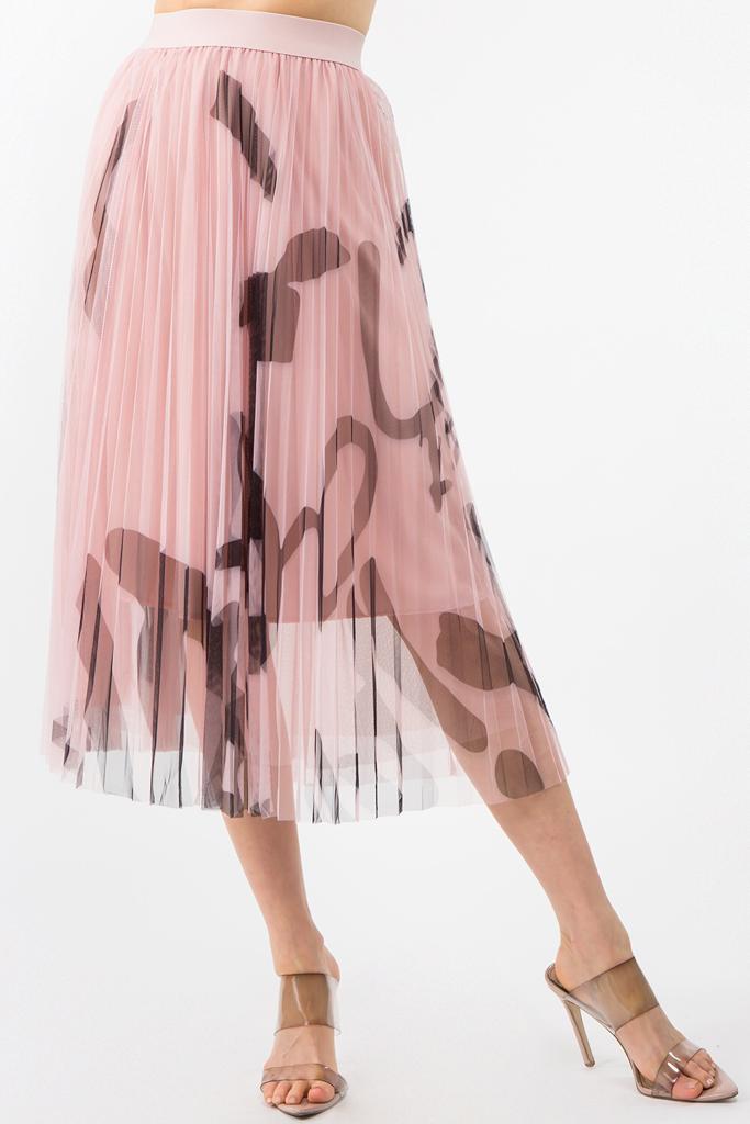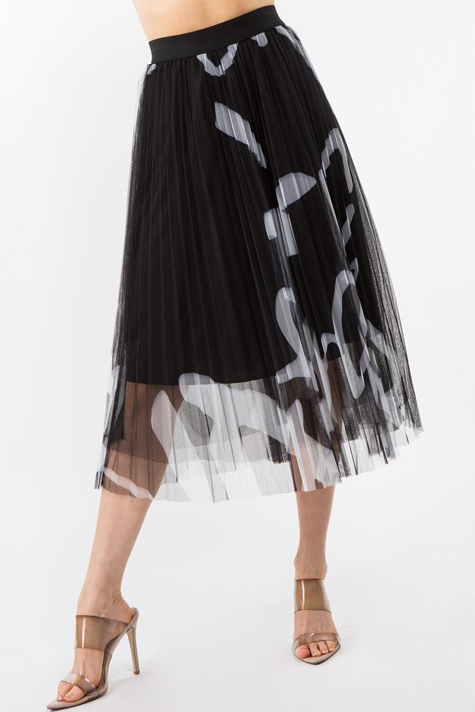 Falda midi de tul con estampado abstracto con cintura elástica