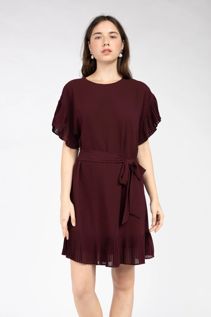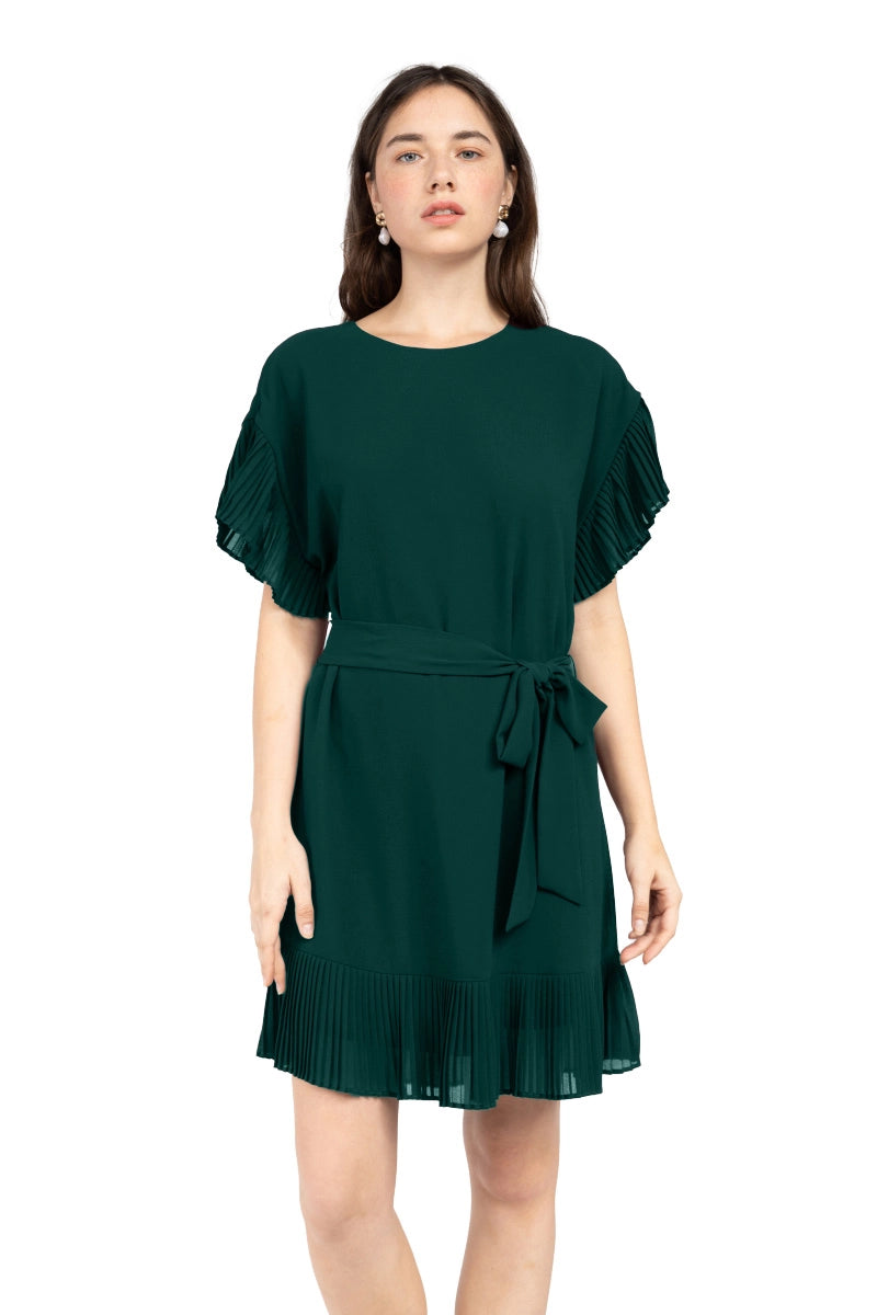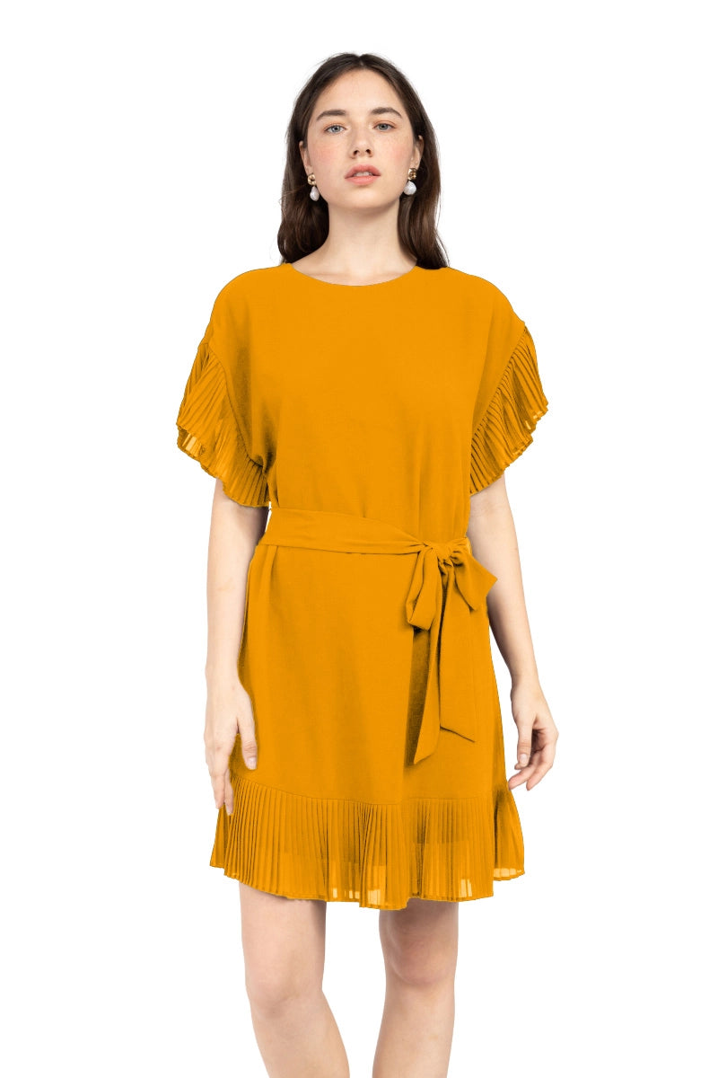 Vestido plisado con hombros caídos y mangas con volantes