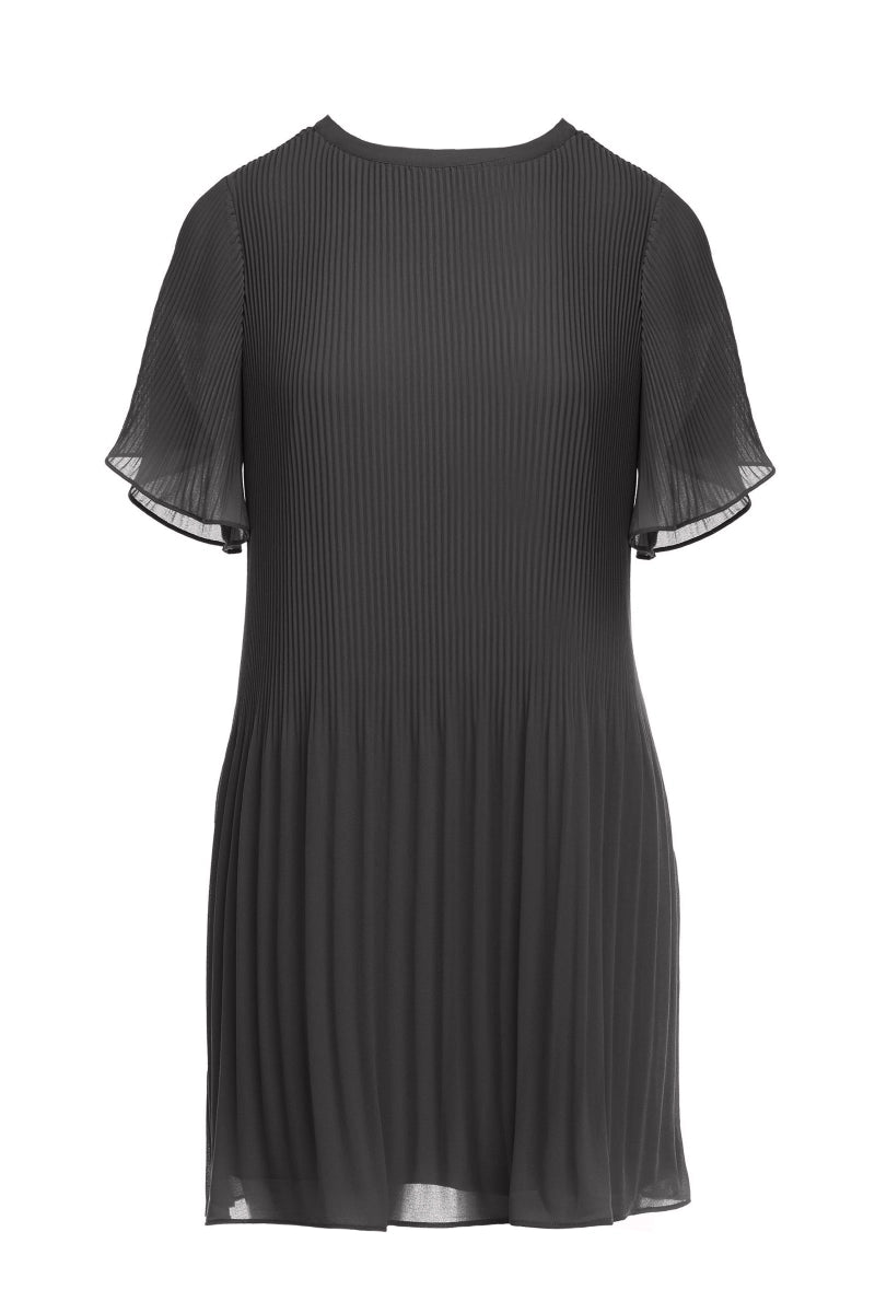 Vestido plisado de manga corta y cuello redondo